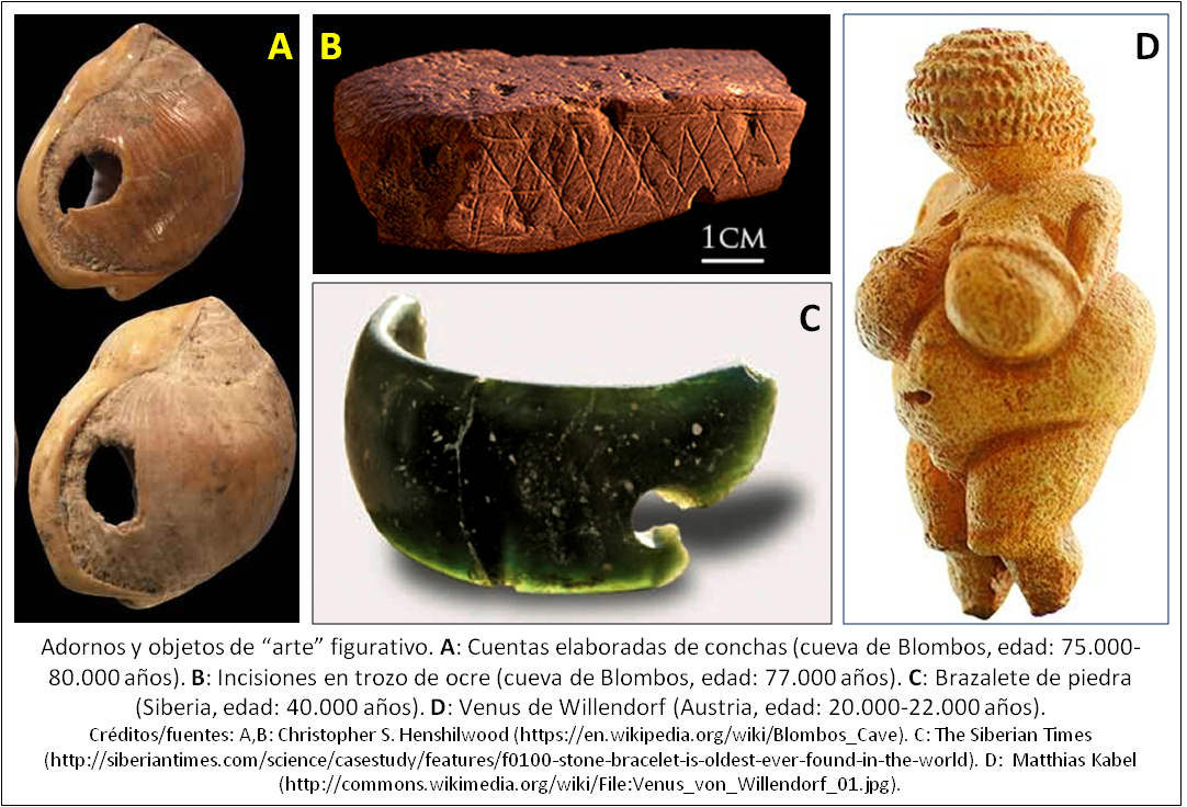 Más prometedores como evidencia para el pensamiento y comportamiento moderno son los objetos artísticos o de ornamentación, ya que estos parecen reflejar algún tipo de pensamiento simbólico, el cual – como ya mencionamos – se puede considerar característico del pensamiento moderno.
