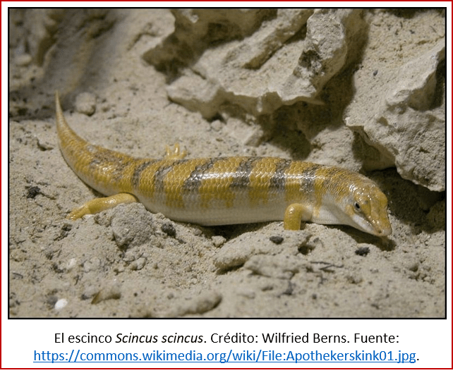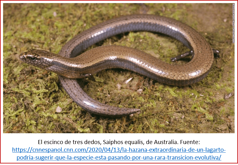 Nota: la foto en el encabezado de esta entrada muestra el escinco de lengua azul (Tiliqua scincoides), un escinco australiano. Nótese las patas de tamaño muy reducido. Crédito: Malcolm Morley. Fuente: https://upload.wikimedia.org/wikipedia/commons/6/64/Eastern_blue_tongued_lizard.jpg.