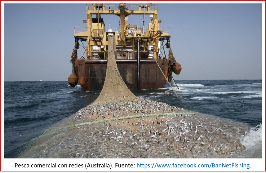 Los peces que logran escapar por las mallas de las redes, no son únicamente los ejemplares juveniles: también hay entre ellos ejemplares más o menos adultos, pero de tamaño más pequeño de lo normal debido a alguna modificación genética que les impidió alcanzar un tamaño grande. En todas las poblaciones de animales ocurre esto: un pequeño porcentaje tiene alguna variante genética que les confiere un tamaño adulto menor de lo normal, al crecer más lentamente. ¿Qué ocurre ahora en el caso de la pesca? Se sustrae a la población una gran cantidad de individuos adultos de tamaño normal o mayor de lo normal, de manera que los individuos adultos que quedan son principalmente aquellos más pequeños, o sea los que tienen aquella variante genética que conduce a tamaños adultos menores de lo normal. Por lo tanto, aumentará en la población el porcentaje de individuos con esta variante genética, y al reproducirse estos individuos, la variante será transmitida a una gran proporción de los descendientes. Este aumento del porcentaje de ejemplares pequeños continuará mientras que dure la pesca preferencial de ejemplares grandes. Al cabo de un tiempo, después de unas generaciones, la gran mayoría de los individuos en la población tendrá la variante genética para un tamaño pequeño, y ya no habrá muchos ejemplares grandes. En aquel entonces, los pescadores se preguntarán qué pasó con los cardúmenes, y a dónde se fueron los peces grandes – y nosotros, los consumidores, ya no conseguiremos esos pescados grandes que tanto nos gusta ver en la mesa.